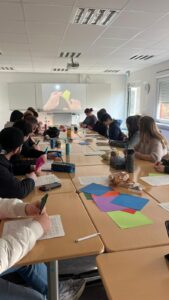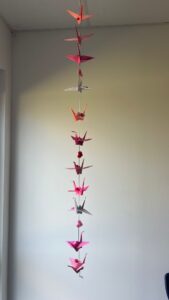 Kreativ-künstlerisch setzten sich andere Gruppen mit zentralen Themen wie „Tod, Trauer, Zerstörung, Leid und Hoffnung“ auseinander. Nach einer historischen Einführung entstanden eindrucksvolle Kunstwerke, die die emotionale Tiefe und Vielschichtigkeit des Themas widerspiegelten. Die Ergebnisse zeigten, wie intensiv sich die Jugendlichen mit den Folgen von Krieg und Gewalt auseinandergesetzt haben. Ein besonders symbolträchtiger Workshop führte in die Kunst des Origamifaltens ein. Die Schüler*innen gestalteten Kraniche – ein internationales Friedenssymbol, das untrennbar mit Hiroshima verbunden ist. Die gefalteten Papierkraniche stehen für Hoffnung, Versöhnung und den Wunsch nach einer friedlicheren Welt.