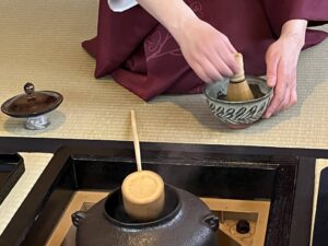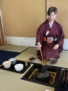 Drei Lerngruppen verlegten ihr Lernen zudem an außerschulische Orte. Sie besuchten unter anderem den Hiroshima-Gedenkhain sowie den Stadtpark. Im Teehaus Senshin-tai bereiteten sie nach japanischem Ritual Opfertee zu und kamen mit der Teemeisterin und Hiroshima-Kennerin Frau Roloff ins Gespräch. Diese Begegnungen ermöglichten einen besonderen Zugang zur japanischen Erinnerungskultur und eröffneten Raum für persönliche Fragen, Eindrücke und Reflexionen.
