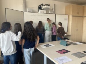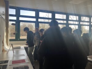 Ein besonderer Dank geht an unsere Kunstlehrerin Monique Breuer und ihrem Kunstkurs des Jahrgangs 12. Durch ihre beeindruckende Ausstellung „Überreste.Überleben.Hiroshima“ in der die Lernenden ihre Linoldrucke und Filme zeigten, erhielten die jüngeren Schülerinnen und Schüler Kenntnisse über den Atombombenabwurf. Die sie nachteilig beeindruckten. Auch ihre Fragen fanden bei den Zwölftklässlern Gehör. Ferner konnten sie ihre ersten Eindrücke verschriftlichen.