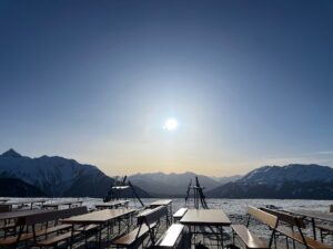 Am Sonntag, den 1. März 2026, machten sich 51 Schülerinnen und Schüler der Jahrgänge 7, 8, 9 und 13 auf den Weg zur Tanzalm in Tirol auf rund 2000 Metern Höhe. Schon während der Liftfahrt zur Hütte wurden wir mit beeindruckenden Ausblicken auf verschneite Berge, strahlenden Sonnenschein und klare Bergluft begrüßt.