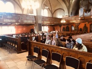 Bereits vor den Ferien besuchten die Schülerinnen und Schüler die Kirche der Sankt-Nicolai-Gemeinde. Dort erhielten sie einen Einblick in den christlichen Glauben, die Bedeutung des Kirchenraums und zentrale Elemente wie Altar, Kanzel und Orgel. Besonders beeindruckend war die Atmosphäre des Kirchenraums und die Möglichkeit, Hintergrundinfos über den Turm und die Geschichte der Kirche zu erhalten.