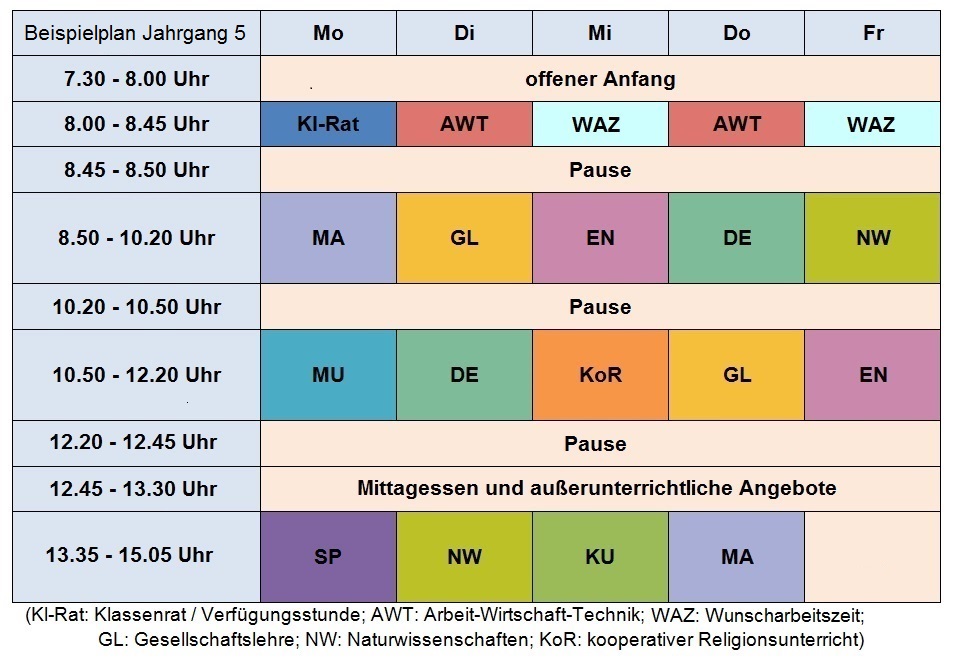 (BeispielstundenplÄNE DER JahrgÄnge 5 und 7)
